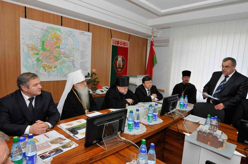 Митрополит Минский и Слуцкий Филарет, Патриарший Экзарх всея Беларуси выступил в УП «Институт Гродногражданпроект» с кратким обращением, в котором обозначил позицию Церкви относительно восстановления памятника зодчества XII столетия - Свято-Борисо-Глебской Коложской церкви.