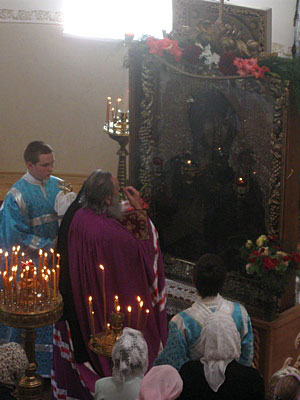 У кладбищенской церкви был отслужен акафист Божией Матери в честь Ее иконы «Одигитрия», после чего владыка Феодосий произнес проповедь. В ней он отметил, что христианам важно покоряться воле Божией и никогда не нарушать ее по примеру жизни Владычицы нашей Пресвятой Богородицы. По окончании крестного хода архиепископ Феодосий поблагодарил участников торжеств и вручил всем присутствовавшим образки Божией Матери «Одигитрия».