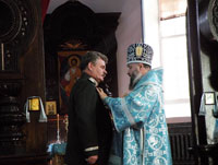 По Литургии епископ Иоанн поздравил собравшихся с праздником Донской иконы Божией Матери и Днём казачьей славы. Его Преосвященство наградил Н.Д. Улаховича памятной медалью «За благие начинания». Это первый случай вручения недавно учрежденной награды.