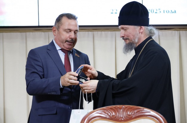 Митрополит Вениамин и председатель правления Беларусбанк Виктор Ананич в рамках единого дня информирования обсудили с коллективом банка тему семейных ценностей