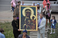 Передвижная звонница епархии и члены мотоклуба «Ночные волки» встречали Ченстоховскую икону на въезде в город и в сопровождении экипажей дорожно-патрульной службы ГАИ УВД Гомельского облисполкома проводили ее на соборную площадь. Соединившись с хранителями иконы, встречный крестный ход продолжил движение к Свято-Петро-Павловскому собору, перед крыльцом которого образ Божией Матери был установлен на аналой. Епископ Стефан возглавил всенародное пение акафиста Божией Матери. По окончании богослужения владыка Стефан обратился к верующим с архипастырским словом.