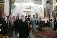 По окончании молебна Его Высокопреосвященство передал митрофорному протоиерею Сергию Гордуну неугасимую лампаду с Благодатным огнем от Гроба Господня для несения во главе экспедиции.
