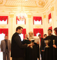 По окончании Литургии Его Высокопреосвященство обратился к собравшимся со словом Настоятель Свято-Георгиевского прихода иерей Николай Лабынько был удостоен сана протоиерея. Владыка Экзарх вручил также ряд церковных наград и благодарностей особо потрудившимся в деле воссоздания храма и организации приходской жизни.