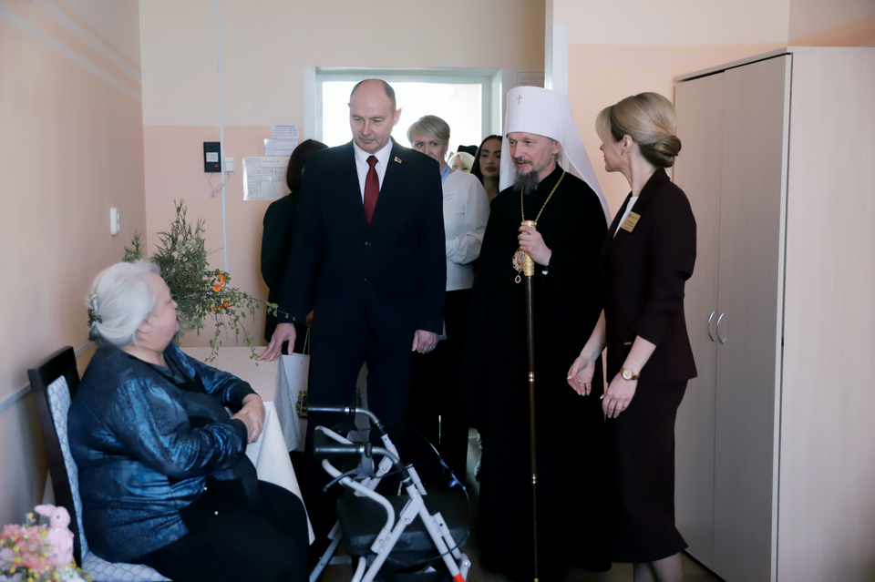 Патриарший Экзарх и председатель Минского областного исполнительного комитета посетили отделение круглосуточного пребывания для граждан пожилого возраста и инвалидов в деревне Залешаны Клецкого района