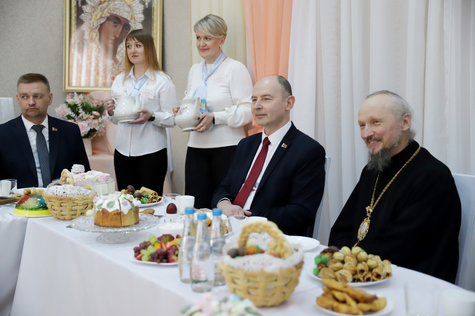В молельной комнате учреждения Митрополит Вениамин совершил пасхальный молебен. Диаконский чин за богослужением возглавил протодиакон Игорь Мартыс. Пасхальные песнопения исполнил хор храма Покрова Пресвятой Богородицы города Клецка под управлением Ольги Гладкой.