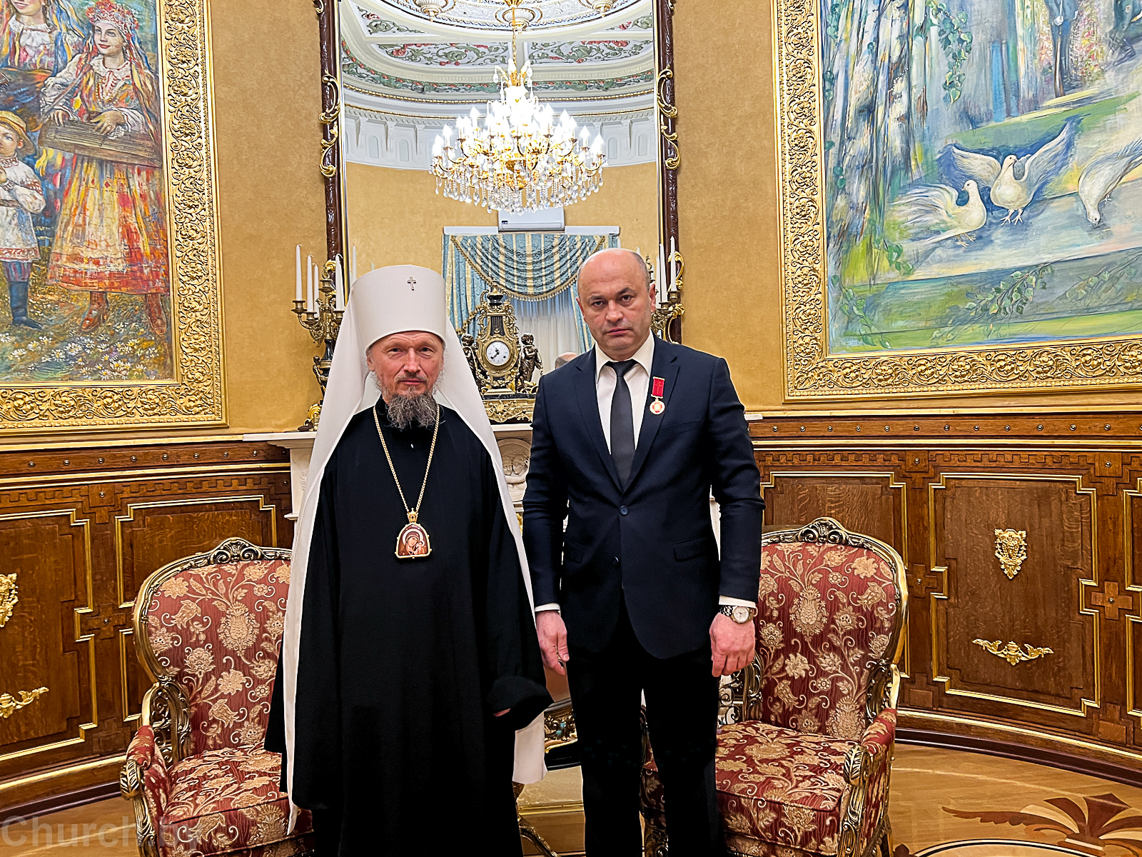 В ходе общения Его Высокопреосвященство наградил Александра Рогожника медалью Белорусской Православной Церкви святителя Кирилла Туровского.