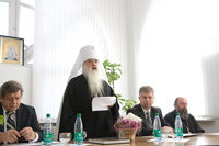 Заседание посвящалось сотрудничеству Церкви и государства в сфере социального служения. Открыв его, Уполномоченный по делам религий и национальностей Л.П. Гуляко поблагодарил настоятеля прихода иконы Божией Матери «Всех скорбящих Радость» протоиерея Игоря Коростелева за экскурсию по Центру, организованную за полчаса до заседания для представителей государственной стороны.