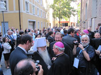 10 сентября в Мюнхенском аэропорту Его Высокопреосвященство встречали представитель архиепископа Мюнхена кардинала Рейнхарда Маркса апостольский протонатор доктор Себастьян Аннезер и секретарь Общины святого Эгидия профессор Адриано Рокуччи.