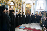 От лица Синода Белорусской Православной Церкви Патриаршего Экзарха приветствовал архиепископ Новогрудский и Лидский Гурий, управляющий делами Белорусского Экзархата Московского Патриархата. Во внимание к усердным трудам во Славу Церкви Божией и в связи с 400-летием со дня преставления святой праведной Софии Слуцкой владыка архиепископ огласил грамоту Святого Синода БПЦ о награждении Патриаршего Экзарха всея Беларуси Митрополита Филарета орденом Белорусской Православной Церкви святой праведной Софии Слуцкой, учрежденным в 2012 году в ознаменование юбилея.