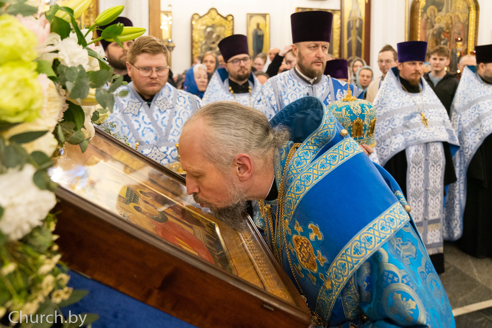 В канун праздника Благовещения Пресвятой Богородицы Патриарший Экзарх возглавил всенощное бдение в Свято-Духовом кафедральном соборе города Минска