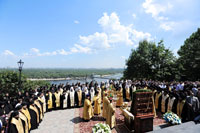 На молебен был принесен ковчег с частицей честных мощей святого равноапостольного князя Владимира и икона Крестителя Руси.