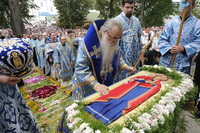 По окончании Божественной литургии состоялся крестный ход с плащаницей Пресвятой Богородицы из Свято-Успенского собора к Явленской церкви монастыря с чтением акафиста Божией Матери.