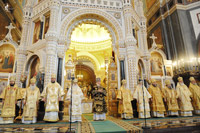 В алтаре Его Святейшество поздравил мэр г. Москвы С.С. СобянинПо окончании Литургии митрополит Крутицкий и Коломенский Ювеналий совершил благодарственную молитву.