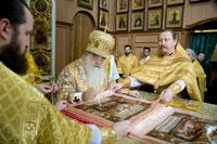 После чтения Евангелия Патриарший Экзарх совершил чин освящения антиминсов для приходов Минской епархии Белорусской Православной Церкви.