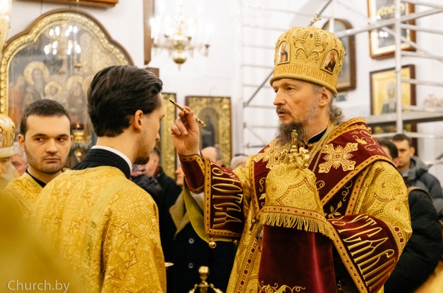 За богослужением Патриарший Экзарх совершил хиротесию в иподиакона, а затем диаконскую хиротонию выпускника Московской духовной академии Ростислава Байдакова. По заамвонной молитве была совершена заупокойная лития о приснопоминаемом Митрополите Филарете (Вахромееве), первом Патриаршем Экзархе всея Беларуси.